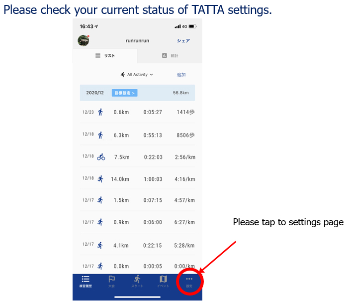 - Step5Open “TATTA” on your smartphone and run during the race period; your distance will be counted.