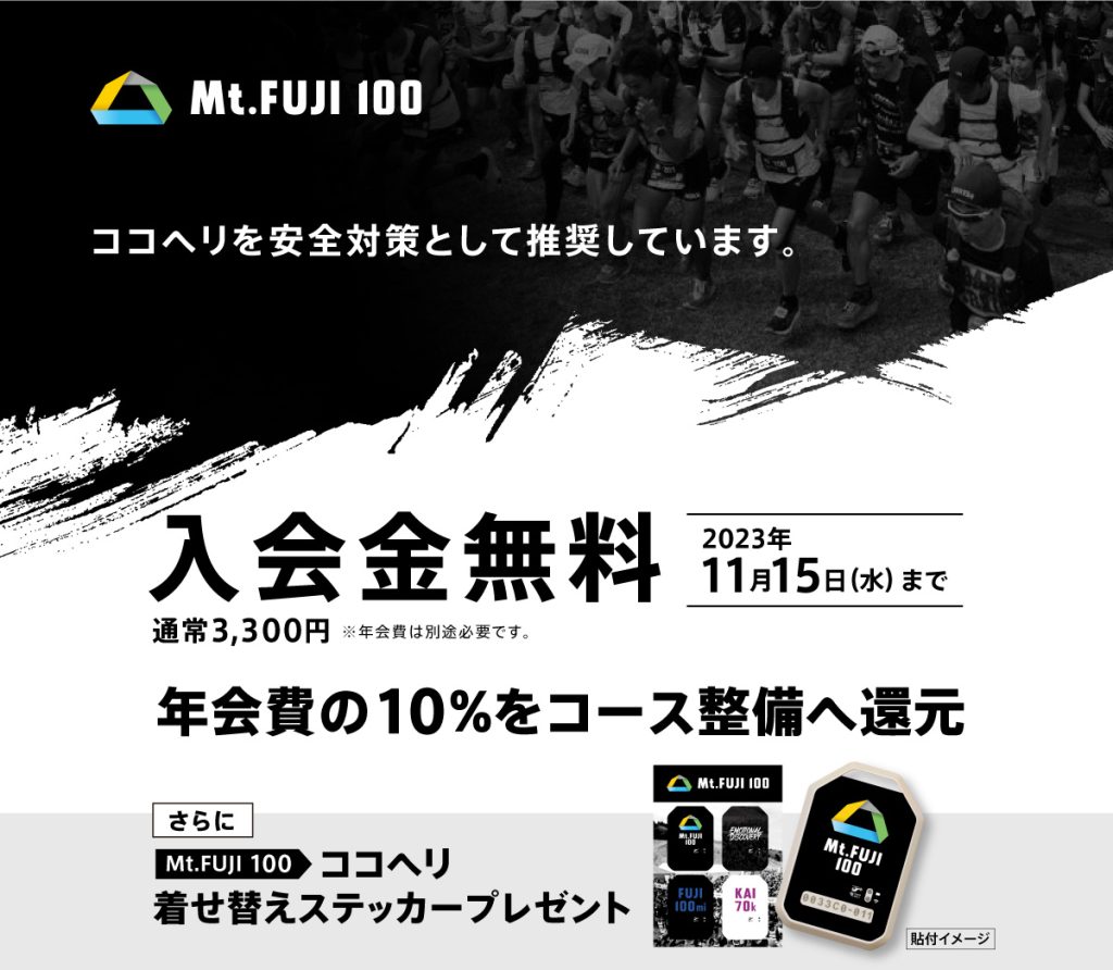 ココヘリ Mt.FUJI100のオリジナルステッカー付き入会金割引キャンペーン スタート(〜11/15まで)