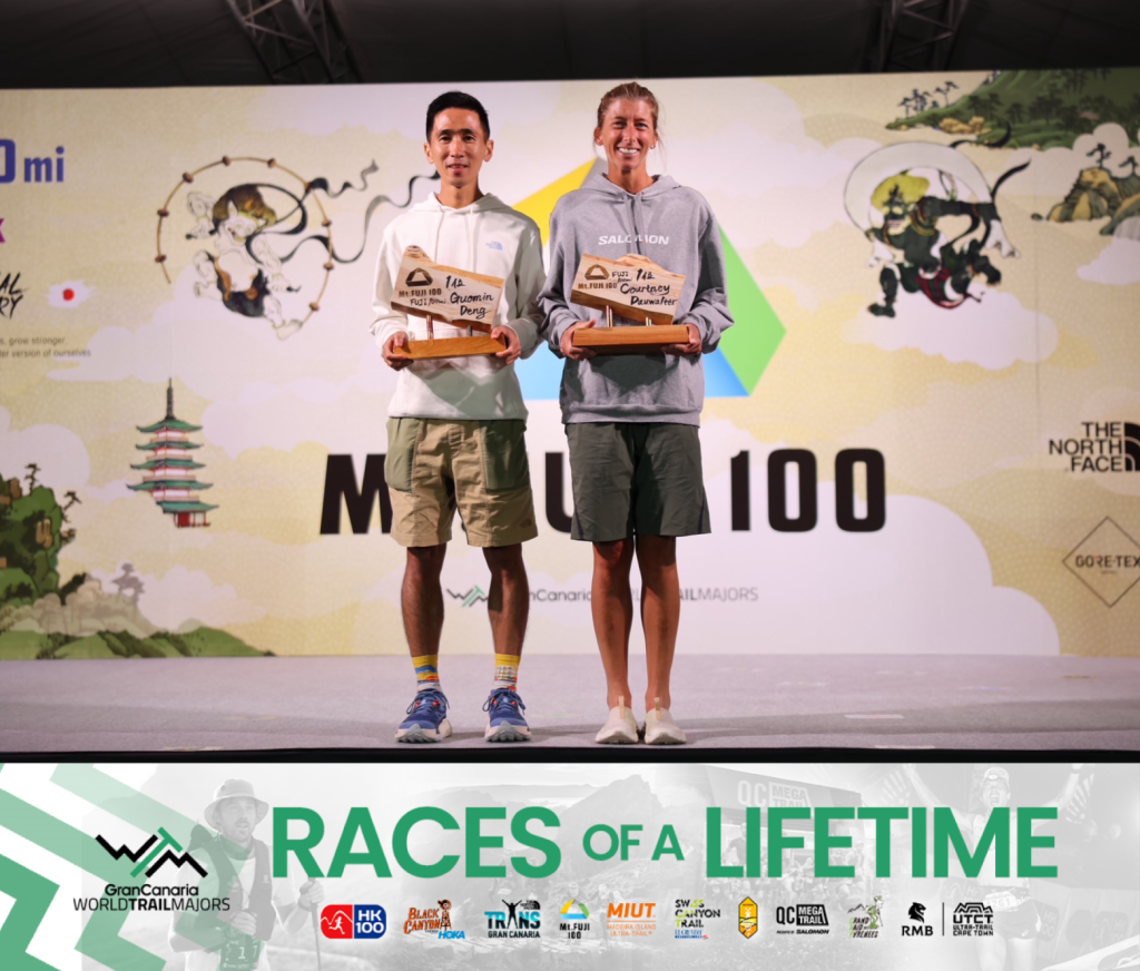 表彰式の合間には、マウントフジ100の共同代表である千葉達雄 Tatsuo ChibaがAnta Hong Kong 100 の主催者であるジャネット・ウー Janet Ng、スティーブ・ブラマー Steve Brammerとともに登壇して、両大会が参加しているGran Canaria World Trail Majorsについて紹介しました。紹介の最後には、マウントフジ100の大会会長である鏑木毅 Tsuyoshi Kaburaki がWorld Trail Majorsを構成している10大会を5年かけて全部完走する、という挑戦に取り組むことが発表されました。鏑木はこのプロジェクトについて抱負を語りました。「今日完走したFUJI100miを皮切りに、60歳となる年に全ての大会のレースを完走するというこの計画にワクワクしています。ぜひ応援してください。皆さんも私に続いて是非挑戦してください。」