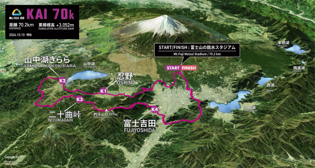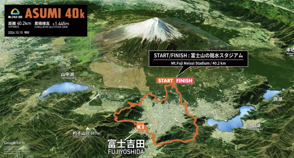 - 168kmの FUJI100mi(フジ100マイル)、70kmの KAI70k(カイ70k)に加え、40kmの ASUMI40k(アスミ40k)を新設